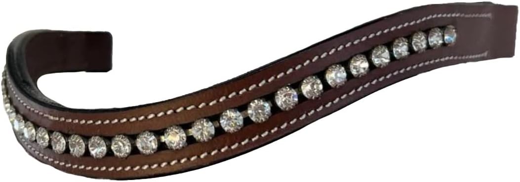 Fancy bling English wave browband. Soft and pliable leather featuring a clear crystal and link accent. Available in either Brown or Black leather and 3 sizes.