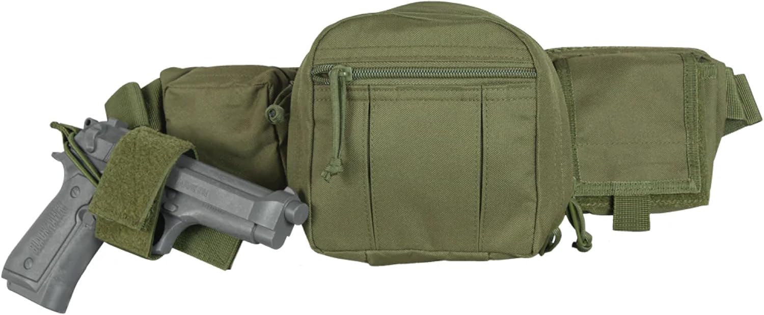 Stay secure, prepared, and comfortable with the Fox Outdoor Products Tactical Fanny Pack – a discreet waist pack built for concealed carry and organized gear transport. Designed for those who need quick access to essential items without drawing attention, this tactical waist pack delivers concealed carry readiness in a sleek, functional form. The large main compartment features dual zipper slides and a loop panel interior designed to house the included universal hook-and-loop holster, making it ideal for concealed carry of compact sidearms. Additional features include two side pockets for carrying extra accessories like spare magazines, utility tools, or EDC items. A drop-down front flap allows for quick expansion and easy access. Whether you're on a range day, hiking trip, or navigating city streets, the tactical fanny pack keeps your items secured and organized. The breathable mesh back panel helps improve airflow and comfort, even during extended wear. An adjustable waist strap with a quick-release buckle fits most users and ensures that the fanny pack stays securely in place, no matter the activity. Dimensions: 6" x 5" x 3" | Weight: 0.7 lbs From tactical preparedness to everyday function, trust Fox Outdoor Products to deliver rugged performance in a compact, low-profile design.