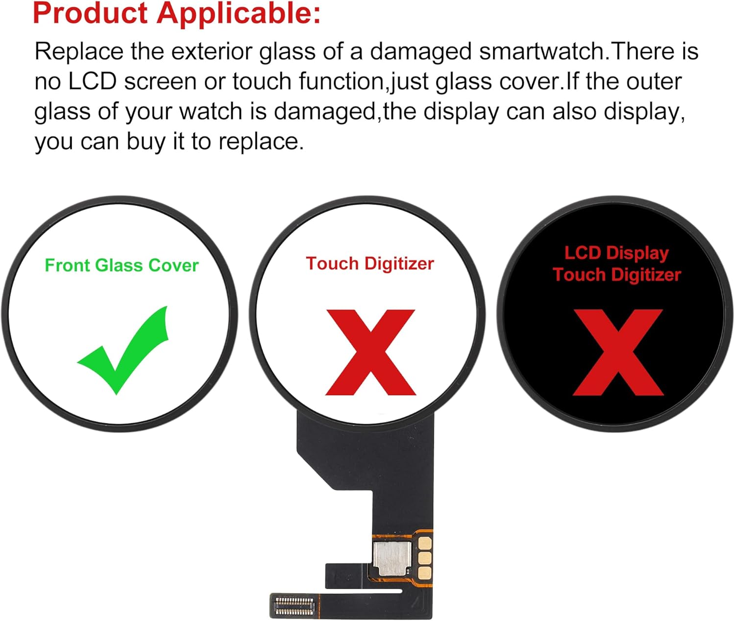 Product name: Compatible with Samsung Galaxy Watch 6 44mm R940 Front GlassCompatibility:Samsung Galaxy Watch 6 44mm R940: glass packing vertical : 1 x Front Glass, 1 x toolsTipps for intallation 1 Before installing, please watch YouTube instructional video. Link: https://www.youtube.com 2. Before installation, the power to the phone must be turned off. If it is not handled properly, it may damage the phone. 3. Use the correct screwdriver to loosen the screw. Mark the screw and remember that it is the original position. These screws are different in size and length, and if they are placed in the wrong position, the screen may be damaged. 4. When removing the front glass, please be careful not to scratch your fingers due to broken glass. If you will not be able to install it, please seek professional help.