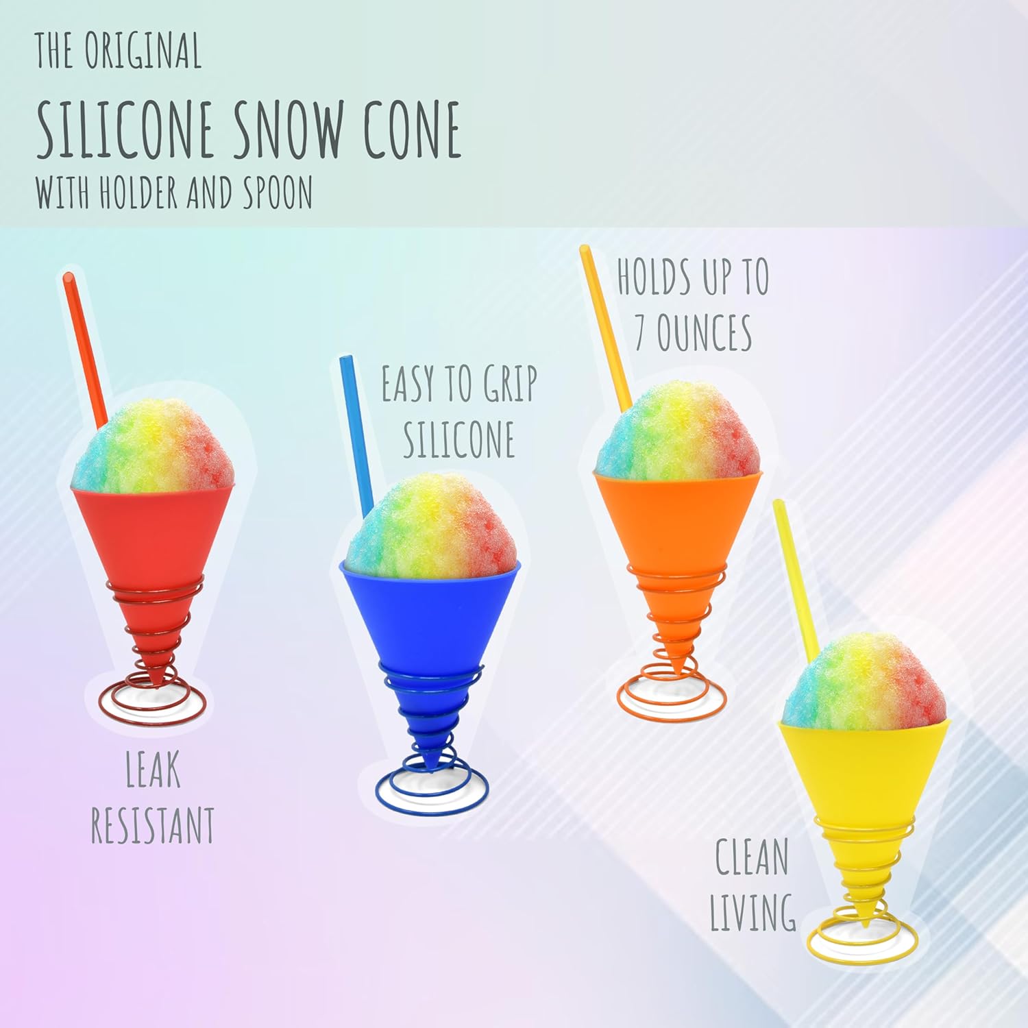 Tired of flimsy paper cones that leak, tear, and leave a sticky mess? Say goodbye to disposable cups and hello to effortless fun with our Gift Boutique Reusable Silicone Snow Cone Cup Set! Whether you’re hosting a summer cookout, a kids’ party, or simply craving a refreshing treat, our high quality food-grade silicone cups keep slushies, shaved ice, and frozen delights mess-free. Designed for convenience, this complete snow cone set includes four vibrant 7-ounce neon silicone cups in red, yellow, blue, and orange, along with four matching plastic spoon straws and sturdy metal holders. The leakproof construction ensures stability while preventing spills, making them perfect for both kids and adults. No more soggy paper cups—just pure enjoyment! Gift Boutique's durable cups resist cracks and leaks, ensuring long-lasting use. The reusable design offers an eco-friendly alternative to disposable options, reducing waste while enhancing your drink experience. Plus, they’re dishwasher-safe for effortless cleaning, so you can spend more time enjoying your party and less time washing cups and dishes. Ideal for versatile occasions, these stackable and space-saving cups are perfect for summer cookouts, BBQs, birthdays, carnivals, and even kitchen prep. Use them for slushies, ice cream, flavored drinks, syrups, lemonade, or even iced tea. Their versatility extends beyond frozen treats—think espresso shots, small snacks, or even mini candy dispensers. From sports teams to family gatherings, these cups are an essential accessory for any event. Preferred by many kids and families, our non-spill, kid-friendly snow cone cups are the ultimate choice for any drink or snack enthusiast. Order now and enjoy a fun-filled summer with your favorite snow cone treats!
