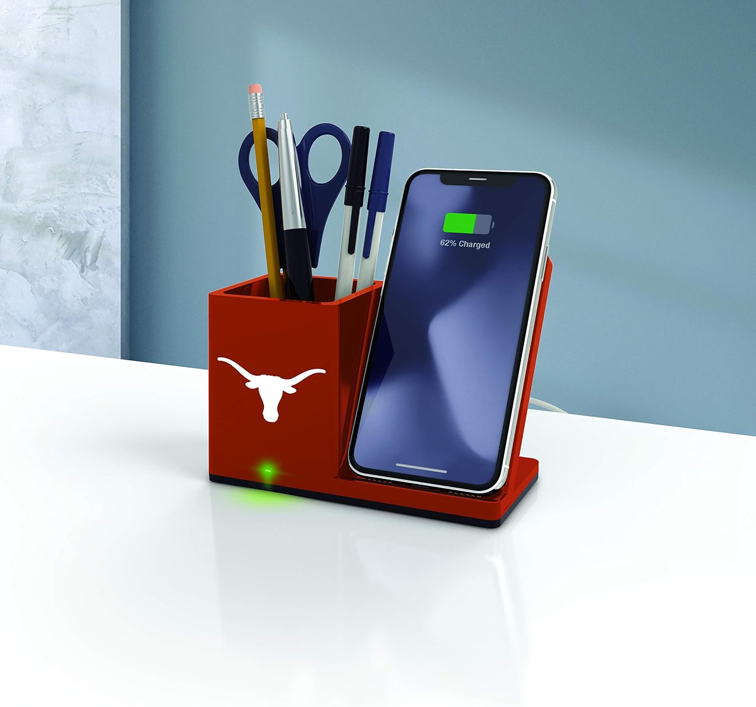 The SOAR wireless charging desktop organizer is the perfect desk accessory for the ultimate sports fan! Perfect for home or office use. The 10W of wireless charging power allows for quick desktop charging and is powerful enough to charge through your case. Helps keep your desk neat while making sure everyone knows who you’re routing for at the big game. Officially licensed NCAA product with a 1 year manufacturer warranty.