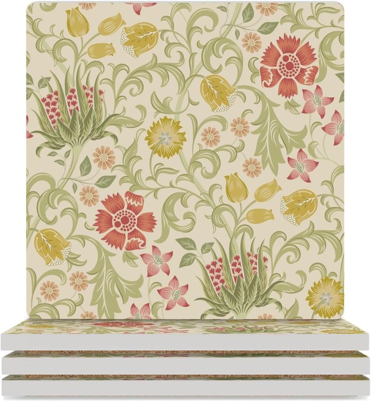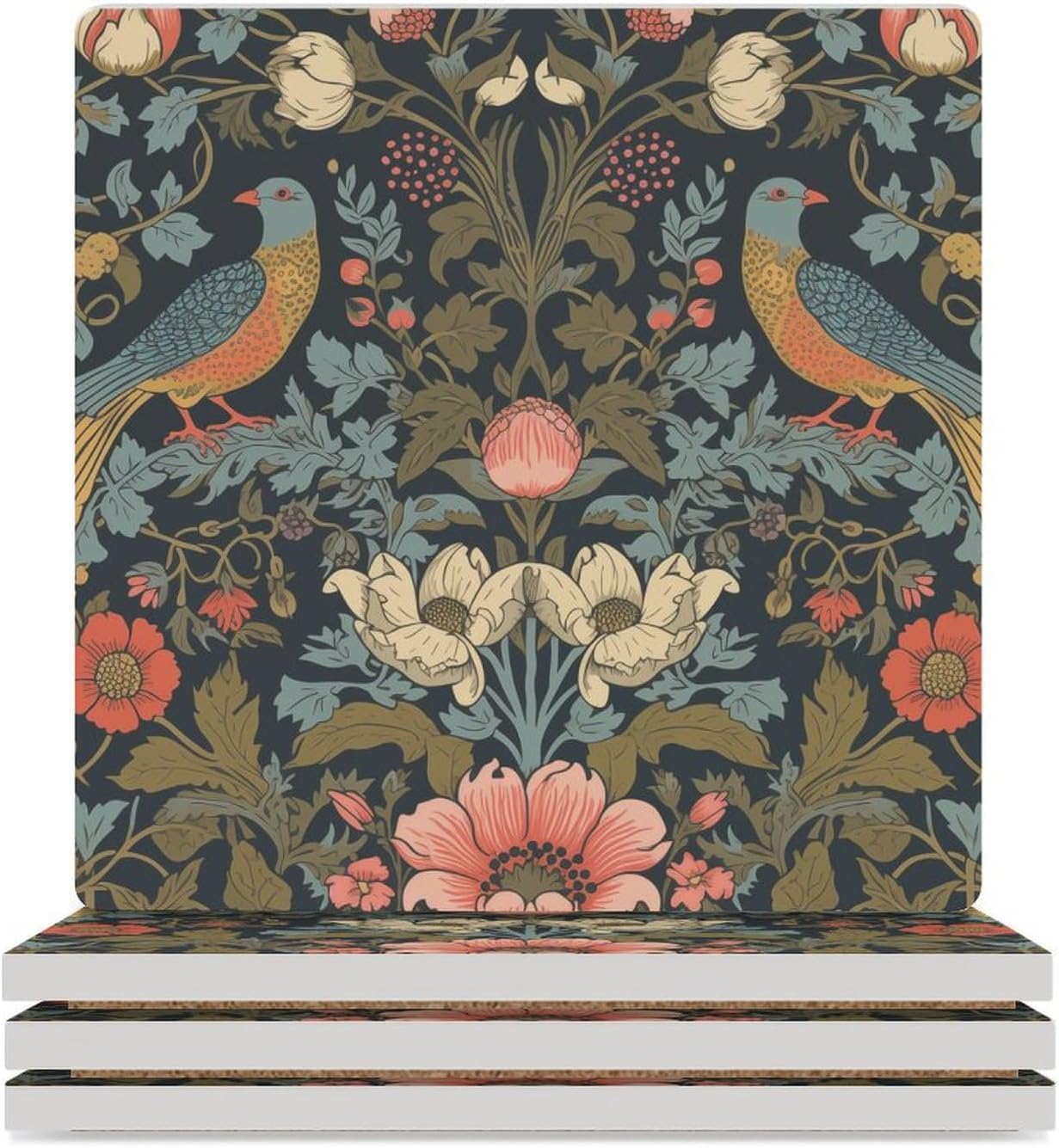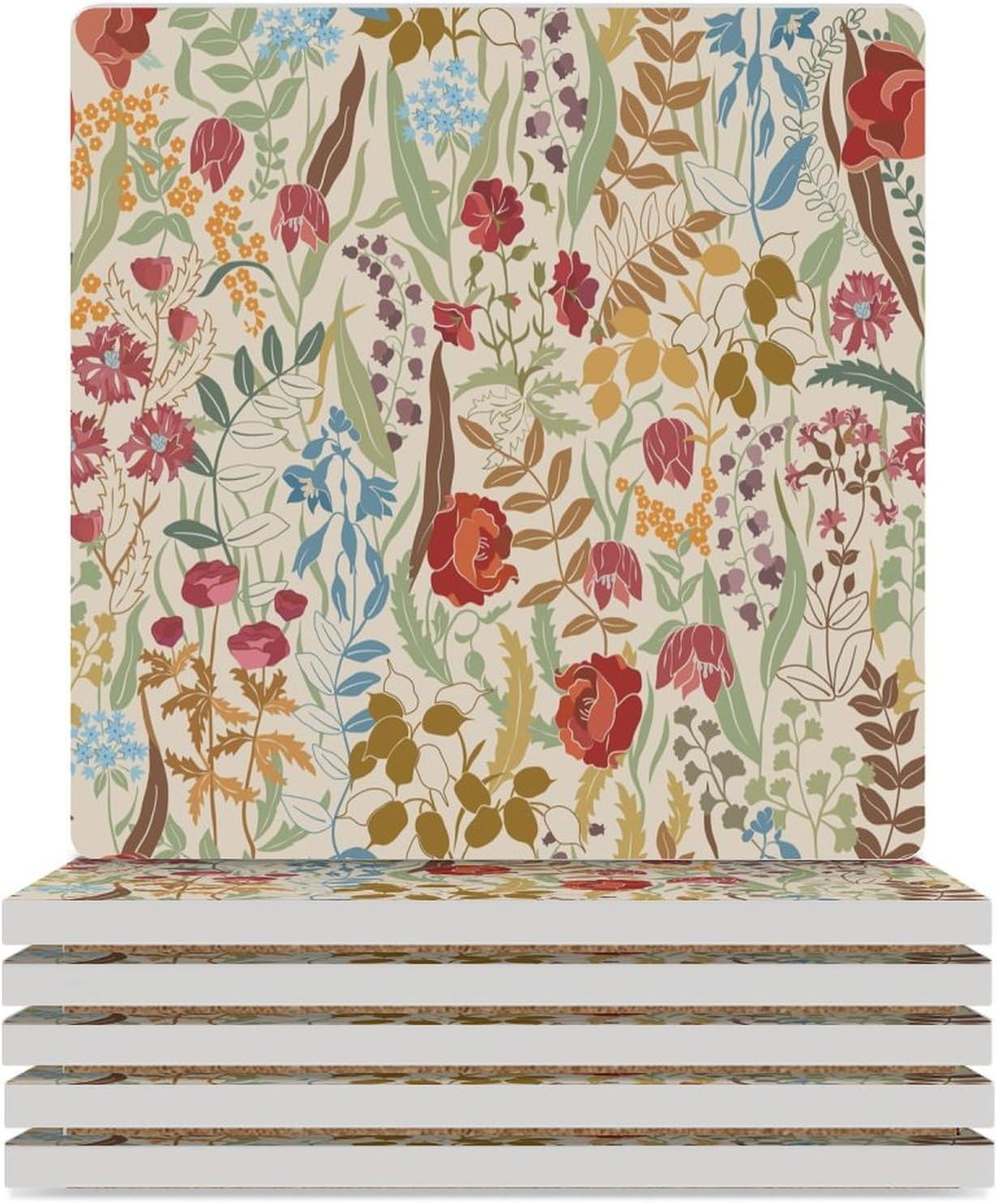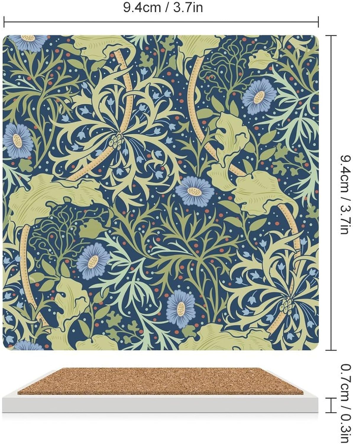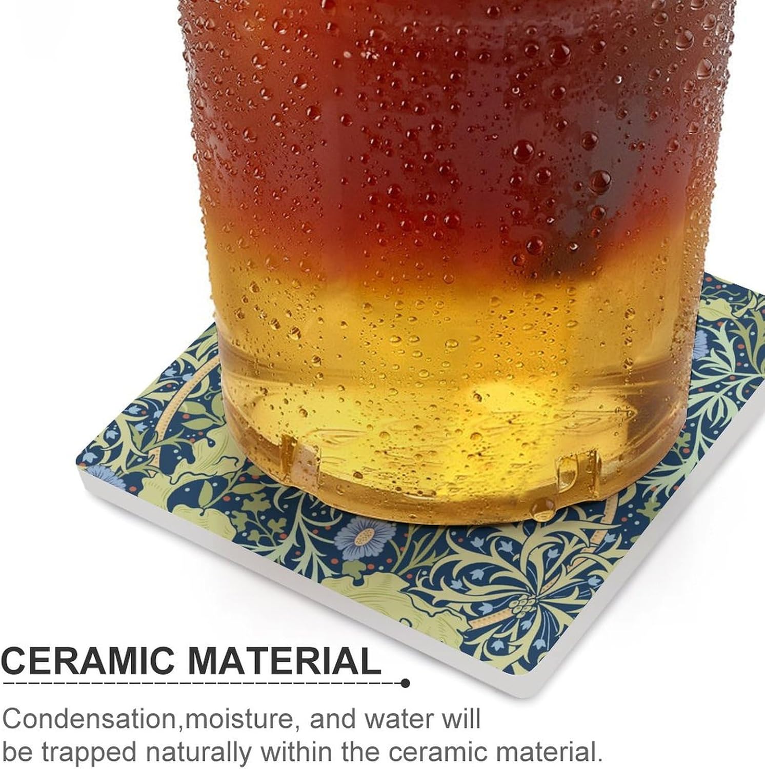 Square-6PCS Coasters Set: Includes Square-6PCS square ceramic coasters, each measuring 4.1 inches in diameter, adding a beautiful element to your home decor and versatile for any occasion.Absorbent & Reusable: Highly absorbent ceramic coasters protect your tables from coffee stains and scratches. Ideal for hot coffee cups or ice-cold drinks, keeping your furniture clean and damage-free.Non-Slip Bottom: Cork bottom prevents scratching on your tables and other surfaces, while the non-slip surface ensures cups stay securely in place.Wide Application: Luxurious pattern design complements any setting. Perfect for home, kitchen, living room, bar, hotel, parties, and restaurants. Ideal for dining tables, coffee tables, and office use.Multipurpose Use: Suitable for coffee cups, wine glasses, mugs, drinks, beer bottles, and more. Can also be used as trivets for smaller pots and pans. Protects tabletop surfaces and furniture while reducing noise from glasses and mugs.