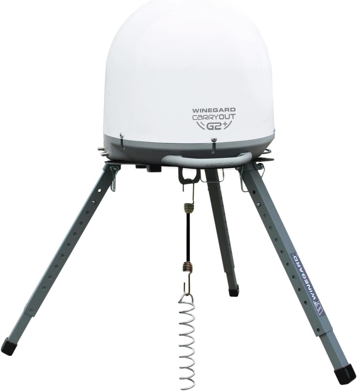 Product Description Aluminum tripod elevates your Winegard carryout (gm-1518, gm-1599 or gm-mp1) portable satellite antenna off the ground for protection against dirt/mud/snow/water. Adjustable height settings from 14. 5 inches to 22 inches. Sturdy ground anchor, 6 inches bungee cord and anchor loop hold the tripod and satellite antenna securely. Easy assembly; quickly disassembles for compact storage. Shipping weight, 4. 4 pounds. Made in the USA. Compatibility: DISH Playmaker, Pathway X1, Pathway X2, Carryout G2, Carryout G2+ Amazon.com Winegard TR-1518 Carryout Tripod MountGreat for short stops, wooded areas, boat docks, decks, etc.Compatible with all Carryout portable satellite TV antennas! (GM-1518, GM-5000, GM-MP1)Elevate Your Carryout Antenna to New LevelsAluminum tripod elevates your Carryout portable satellite antenna off the ground for protection from mud and water.Compact, Simple, SecureEquipped with anti-theft protection -- locking bolt secures the Carryout to the tripod. Weather resistant and extremely sturdy. Assembles easily and disassembles flat for compact storage, requiring minimal space.Elevating the antenna provides protection from mud and water and also helps to prevent tripping over the antenna.Designed, Manufactured and Hand Tested in the U.S.A.Winegard Company is a respected world leader in the design and manufacture of innovative antenna products for satellite and terrestrial communications. Since its founding in 1954, Winegard's pioneering solutions have shaped the industry for home, recreational vehicle (RV), truck, marine, medical and automotive antennas. Winegard is a privately-owned company that designed the first residential antenna for the U.S. It has designed more than 1,000 antenna models and does custom antenna design and development work.Technical SpecificationsShipping Weight: 4.4 lbsAdjustable height & leveling settings (14.5" - 22")Sturdy mount (ground anchor/bungee)Secure unit with anchor loopQuickly disassembles for compact storageCompatible with Carryout (Automatic, Anser, MP1) portable satellite TV antennasIn the BoxTripod base plateTripod leg (3)Hinge pin (3)Anchor screw6" bungee cordLocking boltRubber foot (3)