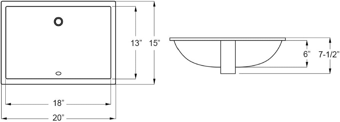 Elevate your bathroom with the sleek sophistication of the MERCURY 20 in. Rectangular Undermount Bathroom Sink. Expertly crafted from high-quality porcelain, this sink offers a timeless design that seamlessly blends with modern and traditional décors alike. Its refined rectangular shape adds a touch of contemporary elegance, while the smooth, glossy finish enhances the brightness of your space. The superior high-gloss finish of the MERCURY sink is meticulously engineered to maintain its brilliance over time, resisting dullness, discoloration, and everyday wear. Available in Classic White and Biscuit, it complements a variety of bathroom styles. The sink can also be bundled with your choice of two premium faucets (drain assembly included), making it an ideal centerpiece for any bathroom upgrade. All versions include a chrome overflow cap, paper template and mounting hardware for hassle-free installation. *Note: The included template is designed to be slightly smaller than the sink itself as countertops are usually cut to include an overhang*