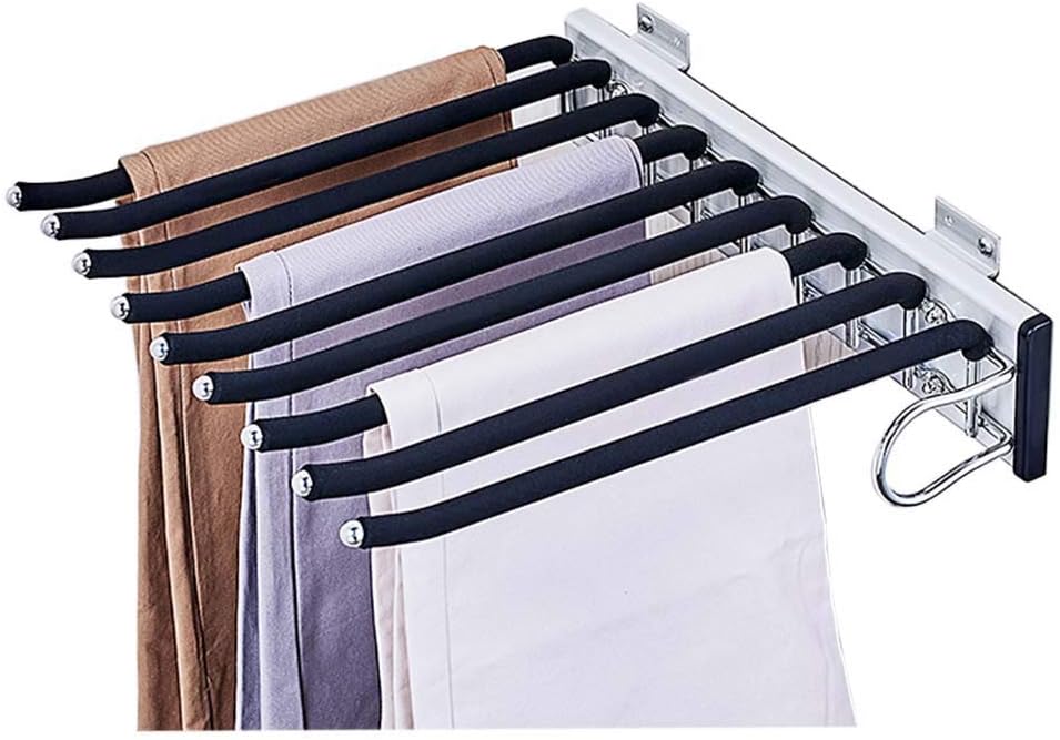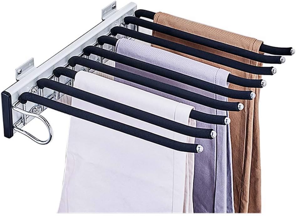 Order details:: Telescopic pants rack *1Material: widened thick aluminum alloy + ABS + activity buckleTrack configuration: silent three-section railMounting base: widened thick aluminum baseCabinet width requirements:≥35cmCabinet depth requirement: ≥ 48cmApplicable people: the publicApplicable space: all kinds of wooden wardrobes* Only pants racks are included, other items are only used for shooting effects* Manual measurement: Allow 1-3cm error* Because of the different light being shot and displayed, it will cause a certain color difference, which is not necessarily a quality problem.